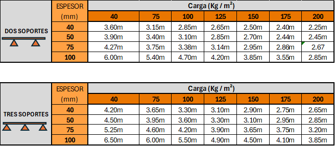 Tablas de caracteristicas, resistencia y prestaciones termicas