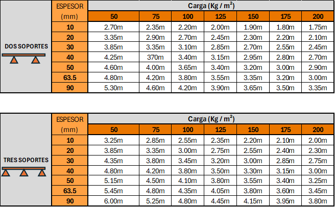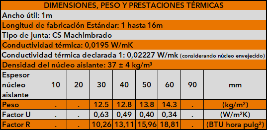 Tablas de caracteristicas Resistencia y prestaciones termicas